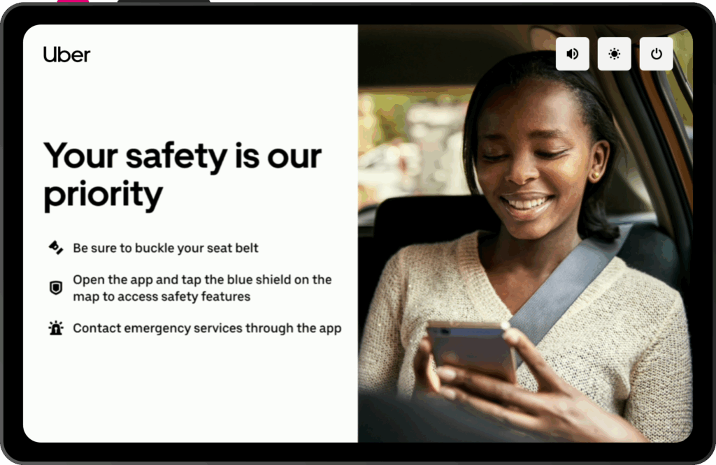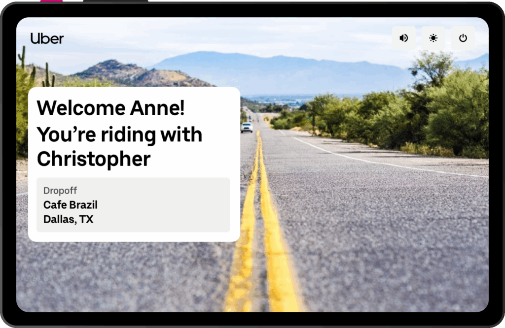 After linking your Uber account, simply power on and mount your tablet for all trips! JourneyTV will automatically activate for Uber rides.